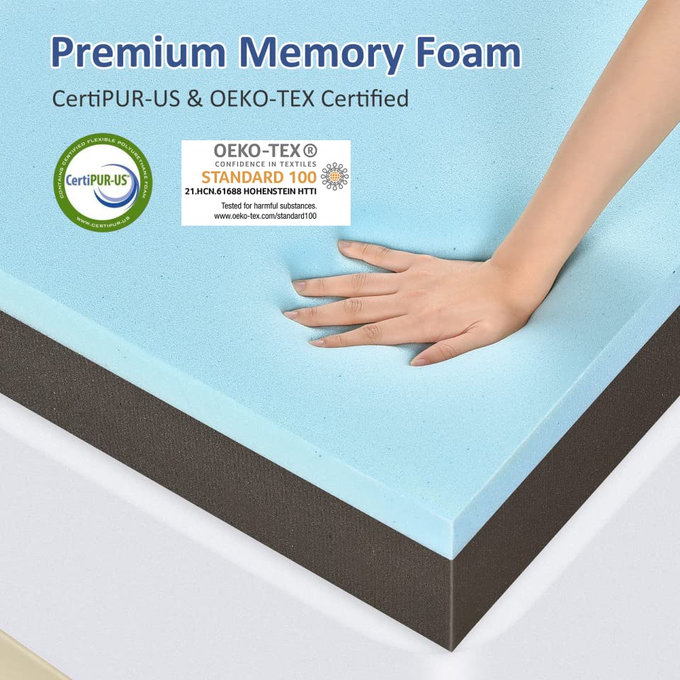 Tips and certification: Allow 24-48 hours for the new foam smell to dissipate and fully expand. The memory foam mattress topper is certificated CertiPUR-US and the soft fabric cover is certificated OEKO-TEX.
