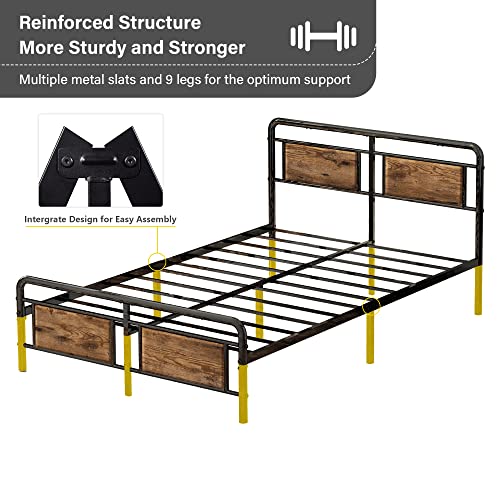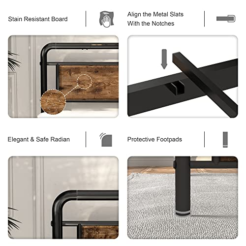 [INDUSTRIAL STYLE] The Combination of High-Quality Solid & Waterproof MDF Board and Reinforced Black Metal Bedframe, featuring Vintage Headboard and Footboard with Round Pipes, Fill your Bedroom with More Cozy Sense.