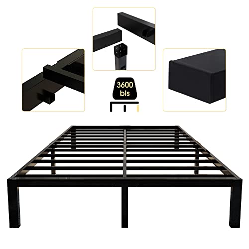 45MinST 3600lbs Heavy Duty Bed Frame,14 Inch Sturdy Steel Slat Mattress Foundation, Metal Reinforced Platform Box Spring Replacement, Easy Assembly with Quick Lock, Queen