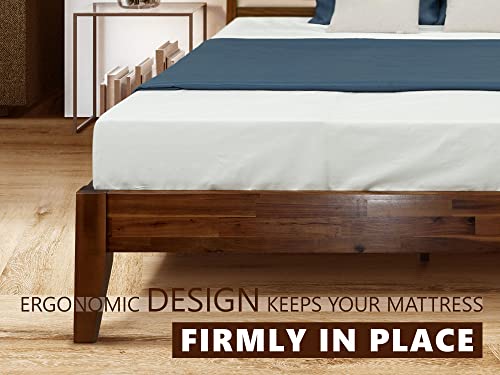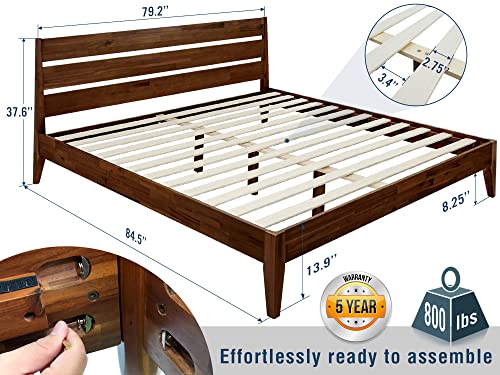 Acacia Emery Bed Frame with Headboard Solid Wood Platform Bed, King Size Bed Frame, Sturdy Natural Wood Bed Compatible with All Mattress Types, No Box Spring Needed, Wood Slats Support, Chocolate
