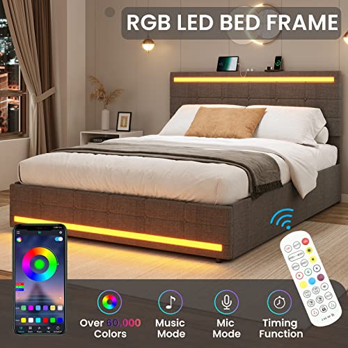 【LED Bed Frame with USB Power Strips】-The headboard has 2 USB ports, making it very convenient for you to charge your phone, tablet, headphones and other electronic, The headboard with LED lights can be controlled by remote control or mobile app with a variety of colors and light modes to choose from. Music Sync mode makes your LED lights flash to the rhythm for an immersive home concert experience.