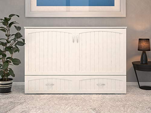For big personalities with little room to spare: these queen-sized beds are tucked inside sleek, compact chests, so you can entertain with ease. The Southampton Murphy Bed Chest is perfect for guest rooms, vacation homes, or anyone that loves to host! A folding memory foam mattress is hidden behind the cabinet’s sleek, cottage-style tongue and groove paneling. Just unlatch, unfold, and your guests have it made.