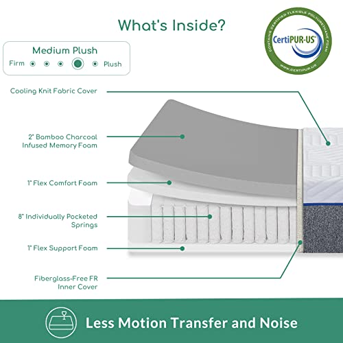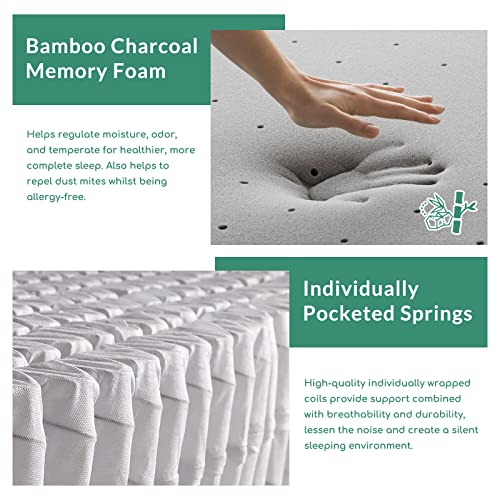 【Bamboo Charcoal Infused Memory Foam Mattress】The Bamboo Charcoal memory foam layer helps eliminate odors and correctly supports your body for exceptional pressure relief no matter what sleeping position you are, which is great for everyone who is suffering from back or neck pain. And you’ll sleep comfortable throughout all seasons, thanks to the charcoal wicking away excess heat and moisture. Wake up delighted every day with this 12 inch hybrid mattress king.