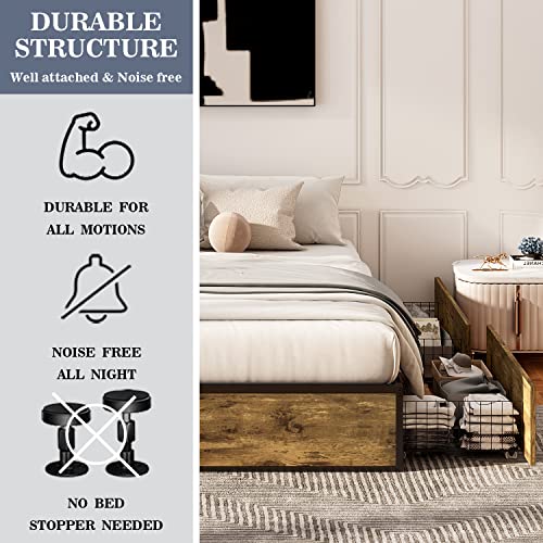 Allewie Platform Full Bed Frame with 4 Large Storage Drawers, Heavy Duty Metal Full Bed Frame with Wooden Footboard & 13 Strong Slat Support/No Box Spring Needed/Noise Free
