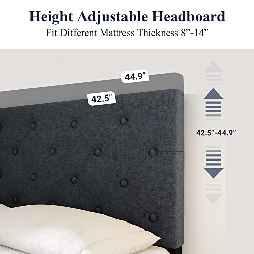 MODERN & COMFORTABLE DESIGN: Upholstered in linen fabric with a diamond stitched button tufted surface, filled with high-density sponge for a soft and comfortable touch, comfortable to lean against reading or watching TV in bed, this deluxe platform bed will add sophisticated style to any bedroom.