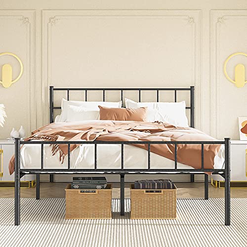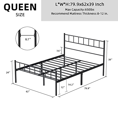 [Strong and durable] The bed frame is made up of metal slats, side rails and support legs and can hold up to 600 pounds. The 11 metal slats between the bottom of the bed frame provide strong support for your mattress.