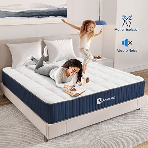 Avenco King Mattress, 12 Inch Hybrid Mattress King Size with Pocket Innerspring and Latex Memory Foam, Medium Firm Mattress King in a Box, Motion Isolation, Relieves Pain & Pressure Points