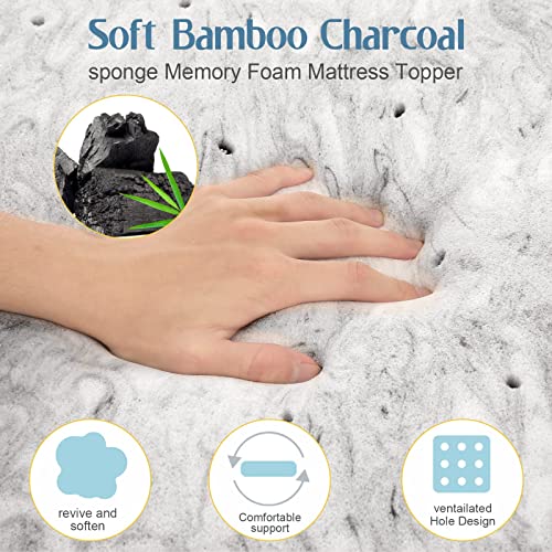AwsumPick Bamboo Charcoal Memory Foam Mattress Topper Twin XL 3 Inch, CertiPUR-US Certified, Super Soft Twin XL Topper College Dorm Extra Long Mattress Pad
