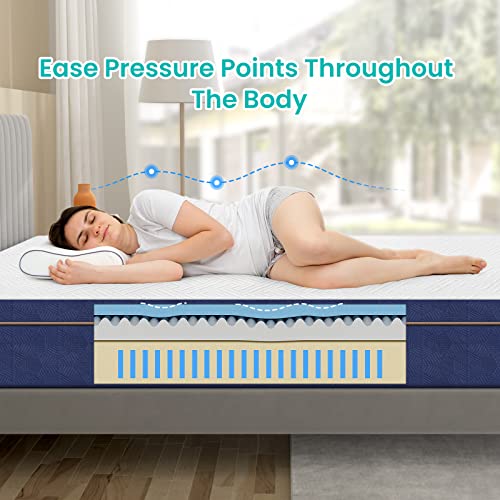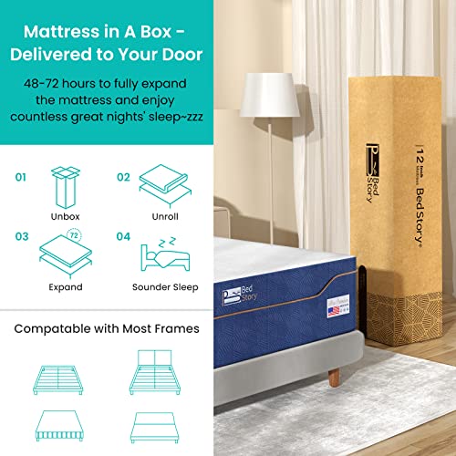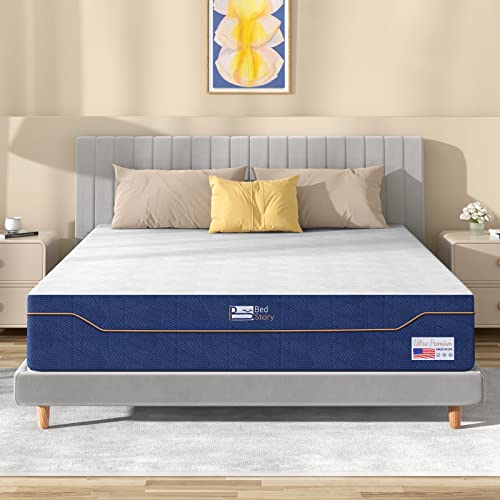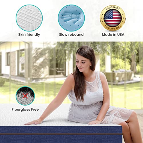 BedStory 10 Inch Queen Memory Foam Mattress in a Box, Relieving Pressure CertiPUR-US Certified Foam Contouring Mattress Made in USA, Blue and White