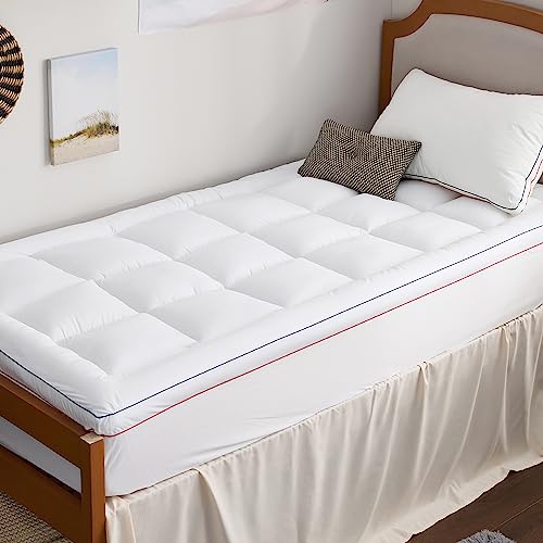 Bedsure Twin XL Mattress Topper Dorm Bedding – Twin Extra Long Thick Mattress Pad Cover with Deep Pocket Fits up to 21″, Soft Pillowtop Bed Topper for Back Pain, Snow Down Alternative Fill, White