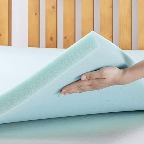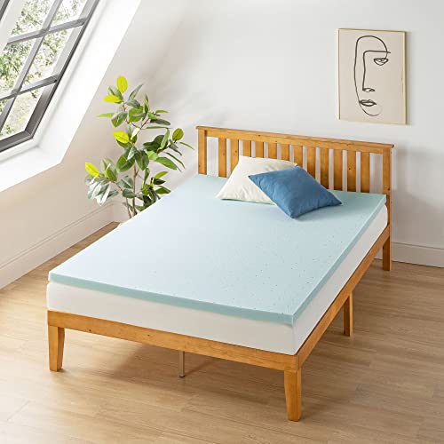 Best Price Mattress 2 Inch Ventilated Memory Foam Mattress Topper, Cooling Gel Infusion, Queen Blue