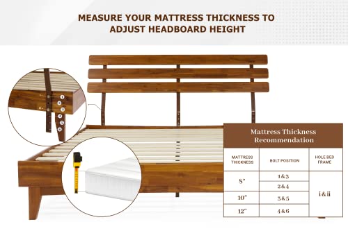 ADJUSTABLE HEIGHT HEADBOARD: Mid Century Adjustable Height Headboard Wood platform bed made of solid wood provides a suitable height from 39 inches to 45 inches. The mattress should be matched to the adjustable height of the headboard (41 inches height with 8 inches mattress, 43 inches height with 10 inches mattress, 45 inches height with 12 inches mattress)