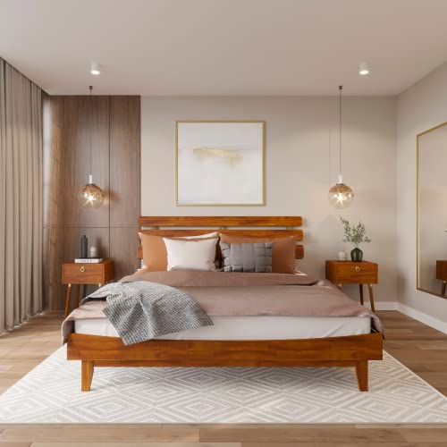 Bme Caden 15 Inch Deluxe Bed Frame with Adjustable Headboard – Mid Century, Retro Style with Acacia Wood – No Box Spring Needed – 12 Strong Wood Slat Support – Easy Assembly – Caramel, King