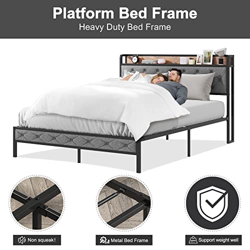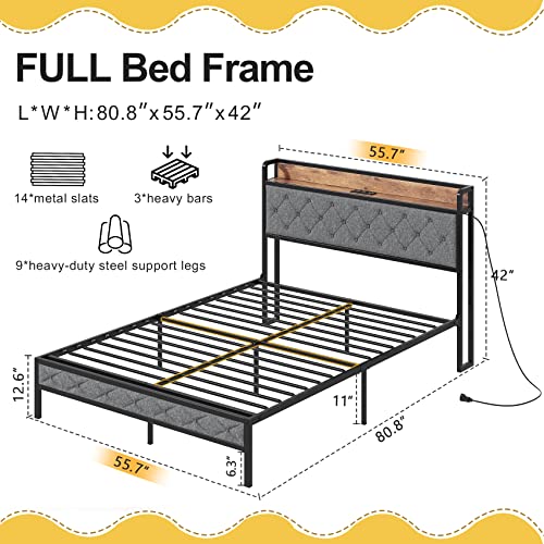 CBBPET Full Size Bed Frame with Headboard, Bed Frame with Charging Station, Platform Bed Frame Full No Box Spring Needed – Easy to Assemble