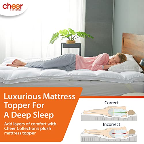 Cheer Collection Thick Mattress Topper – Ultra Luxurious Bed Topper with Stable Anchor Bands – Queen Size 60″ x 80″