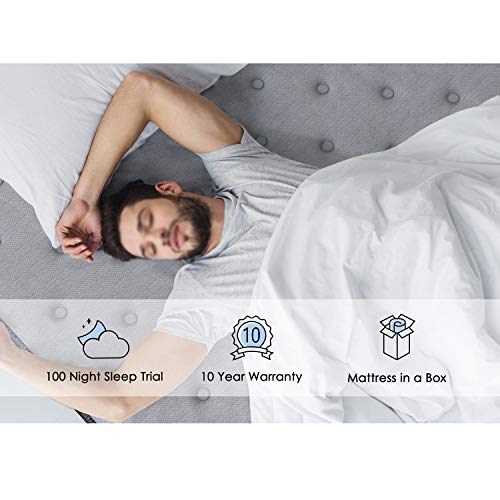5️⃣【Mattress in a Box & Quality Assurance】The mattress is compressed, rolled, and shipped in a box conveniently to your door for easy setup. Fit all frames, such as box spring, floor, slatted base, flat platform. Recovery of 72 hours is recommended for your new mattress to get to its original shape. Up to 100 nights worry-free trial period, backed by a 10-year warranty against manufacturer defects.