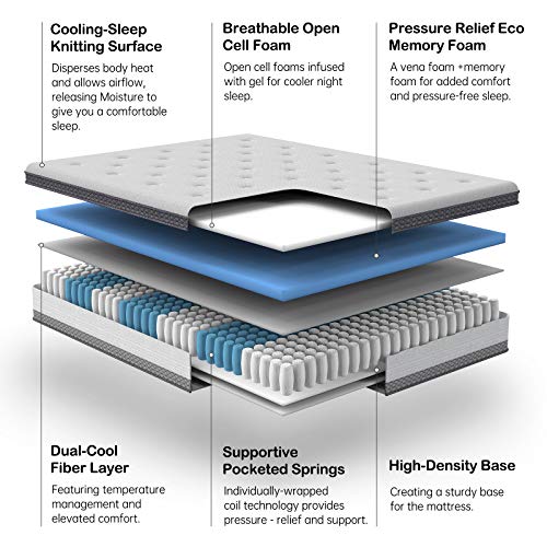 1️⃣【Supportive & Pressure Relief】Featured with a hybrid construction of individual pocket springs and memory foam layers, the Coolvie 10-inch twin mattress is just-right medium firm support for you. We’ve found this sweet spot suits all types of sleeping positions by keeping your spine aligned and the pressure off, so you stay wonderfully comfy all night long.