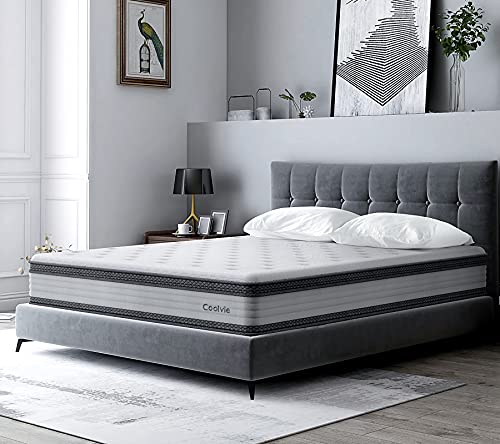 Coolvie Twin Mattress, 10 Inch Hybrid Mattress with Individually Pocket Coils and Dual Layer Cool Comfy Memory Foam, Hybrid Innerspring Mattress in a Box, Cushioning Euro Top Design, Medium Firm