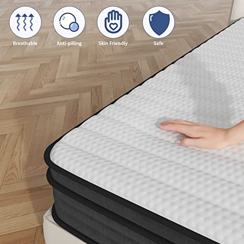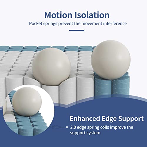【Quiet and Hassle-Free Sleep】Our full bed mattress is supported by hundreds of individual pocket springs and the spring is wrapped in non-woven fabric individually, which can block the effect from your partner’s movement and ensure your sleeping quality, makes you sleep through the night without disturbance.