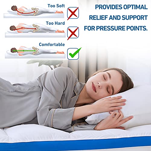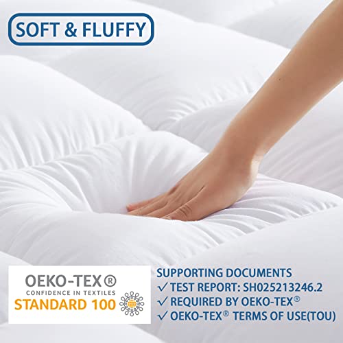ULTIMATE SOFT & BREATHABLE: Mattress topper queen with 110gsm 100% cotton, and the back is made of 85gsm 100% polyester virgin fiber padding makes the mattress topper super fluffy with breathable circulation inside, which is more breathable and softer than ordinary queen mattress topper. The cotton fabric increases mattress topper’s air permeability, so this mattress pad will improve your sleep quality and let you have a good night.