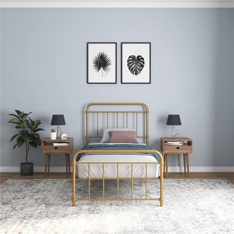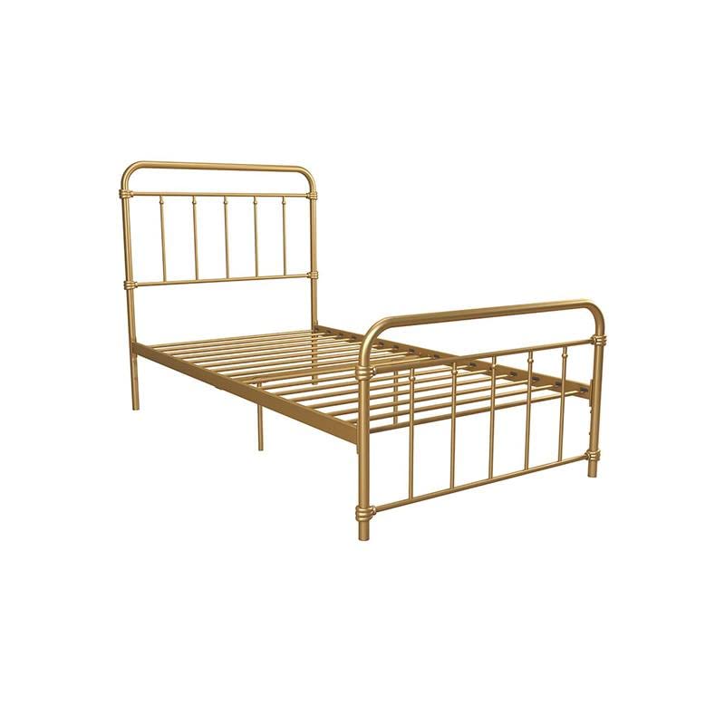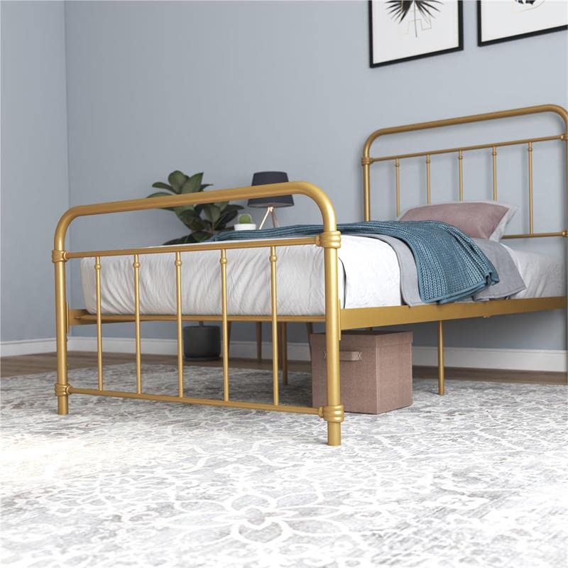 DHP Winston Metal Platform Bed with Rustic Design and Curved Edge Headboard and Footboard, Adjustable Base Height for Underbed Storage, No Box Spring Needed, Twin, Gold