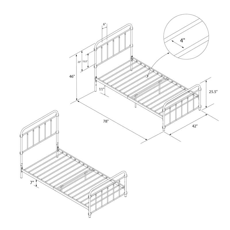 Twin size dimensions: 78” L x 42” W x 46”H. Twin size weight limit: 225 lb.