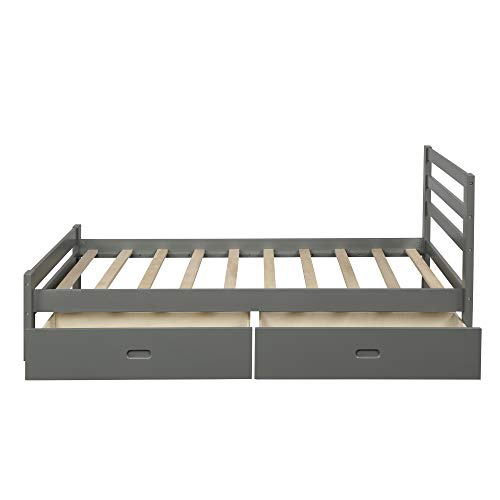 Eafurn Platform Bed with 2 Drawers,Solid Wood Full Bed with Headboard and Footboard,Storage Bed with Slat Supports for Teens, Adults,No Box Spring Needed