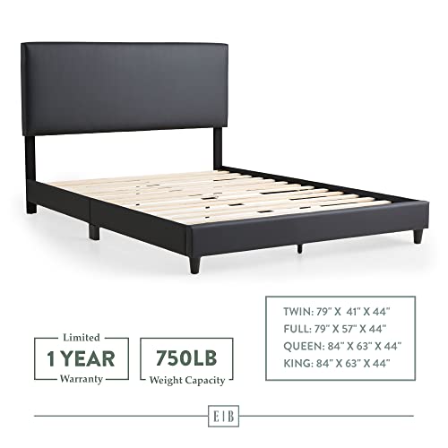 Edenbrook Platform Bed with Headboard – No Box Spring Needed – Faux Leather Upholstered Platform Bed Frame – Low Profile, Twin, Black
