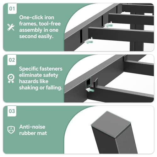 【Whisper-quiet Design】Unlike other brands, we’ve tackled the biggest full bed frame issue – Noise. Our experiments found noise is often caused by friction between bed frame full size. So we added EVA foam strips in the center to silence creaks & groans. Give it a try and experience a peaceful night’s sleep like never before.