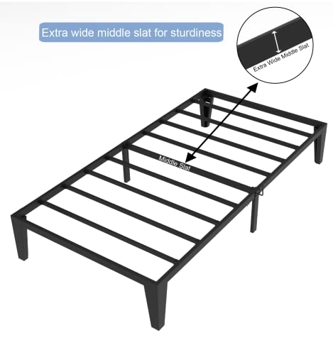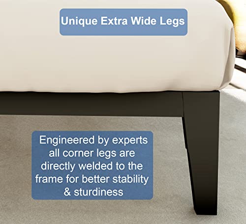 Extra Wide Legs: Unique extra wide 4 legs and 2 additional center support legs makes this twin size bed frame more stable and increases sturdiness.