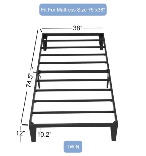 FIRSTHOMES Twin Bed Frame/Twin Bed/Twin Size Metal Platform Bed Frame with Steel Slats/Twin Bed Frame/Easy Assembly/No Box Spring/Without Headboard/ 12” Height/Black