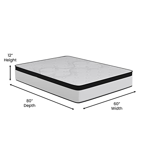 Flash Furniture Capri Comfortable Sleep Firm 12 Inch CertiPUR-US Certified Hybrid Pocket Spring Mattress, Extra Firm Feel, Durable Support, Queen Mattress in a Box