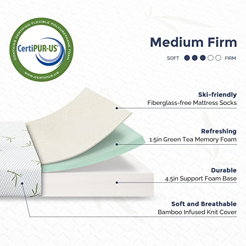 Full Size Mattress for Kids, 6 Inch Full Mattress in a Box with Breathable Bamboo Cover, Green Tea Memory Foam Mattress Made in USA for Bunk Bed, Trundle Bed, Medium Firm, CertiPUR-US Certified