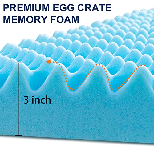 Gel Memory Foam Mattress Topper – Queen 3 Inch Egg Crate Cooling Pad,High Density Breathable and Washable Bed Topper,Comfort Support & Pressure Relieving