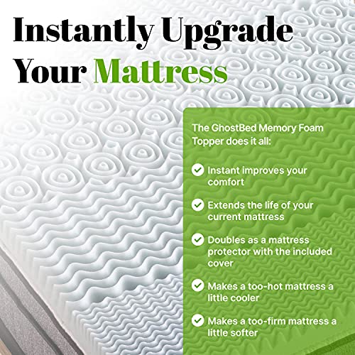 GhostBed 3 Inch Cooling Gel Memory Foam Mattress Topper – Waterproof Cover, Protector & Topper in One, Queen