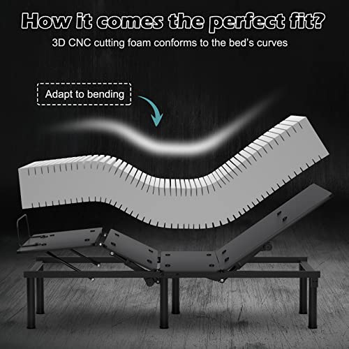 [3D Cutting Foam mattress for Adjustable Base]: Featuring 3D cutting technology, the 7″ 3D original cutting foam of the mattress can better adapt to bending of your adjustable bed frame, leaving there less wrinkles or gaps that may cause discomfort. Meanwhile, this foam layer is also supportive enough for an ideal pressure relief level.
