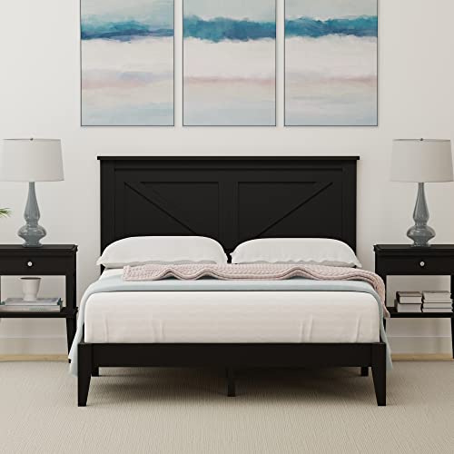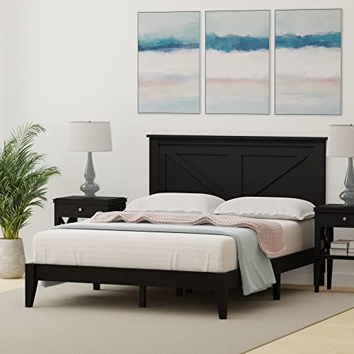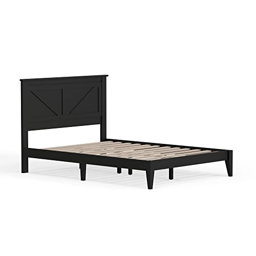 Glenwillow Home Farmhouse Solid Wood Platform Bed in Full – Ebony (Black)