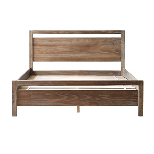 Grain Wood Furniture Loft Queen Size Solid Wood Bed, Weathered Pine