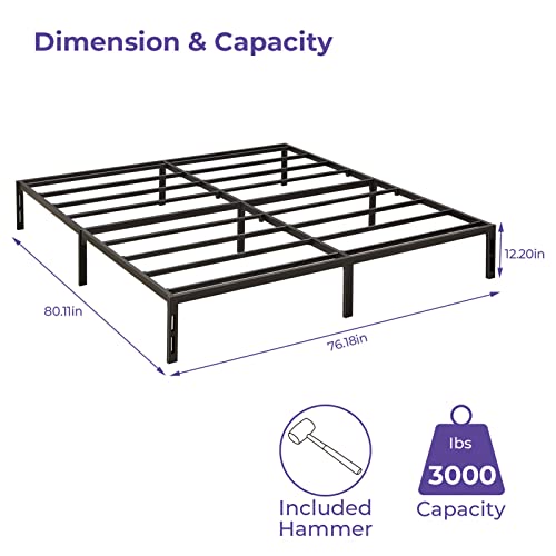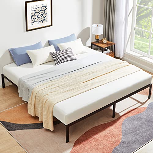 KING BED FRAME NO BOX SPRING NEEDED: Heavy duty king platform bed frame made of reinforced thicker and wider steel slats allow the platform bed frame max loading 3000lbs, stable and no shake, no squeaking issues