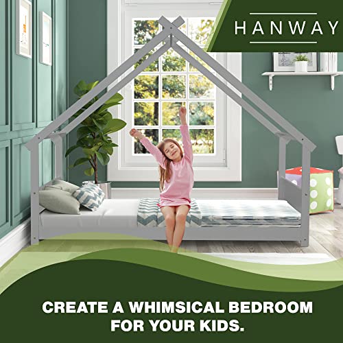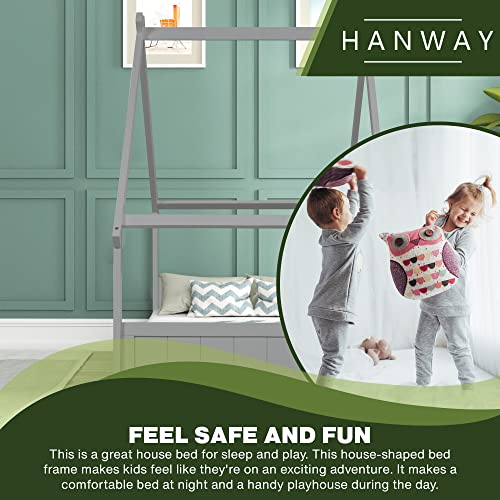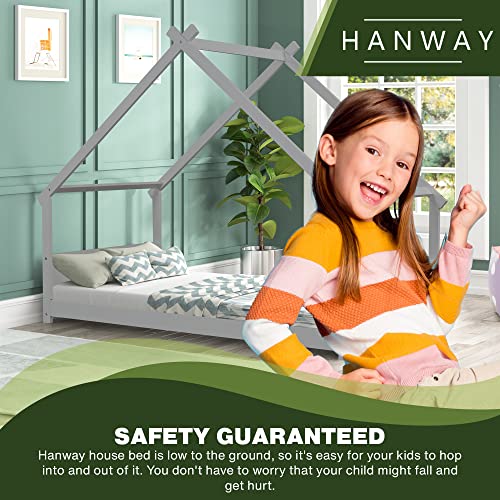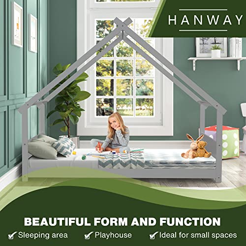 Hanway Twin Size Solid Pinewood House Bed Frame for Kids, Girls and Boys Perfect for Sleepover and Playtime – Indoor/Loft use – Grey