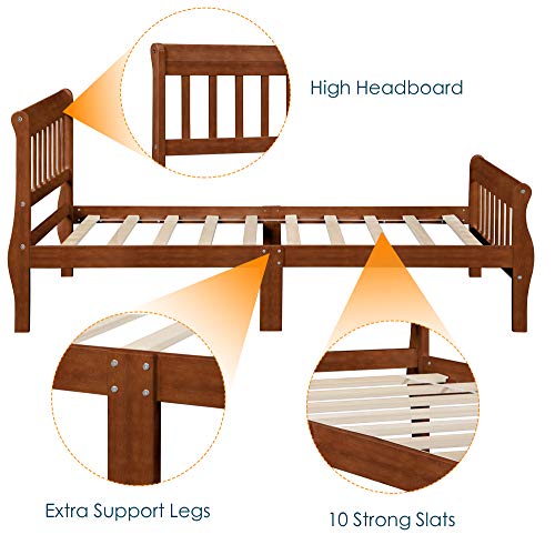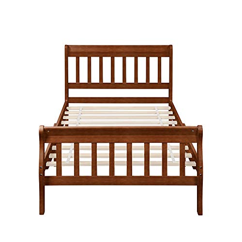 Harper&Bright Designs Twin Sleigh Bed Frame Wood Twin Size Platform Bed for Kids with Headboard and Footboard- Oak Stripe