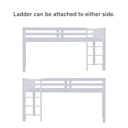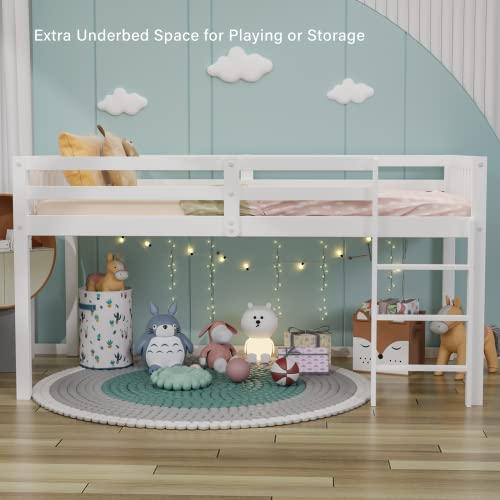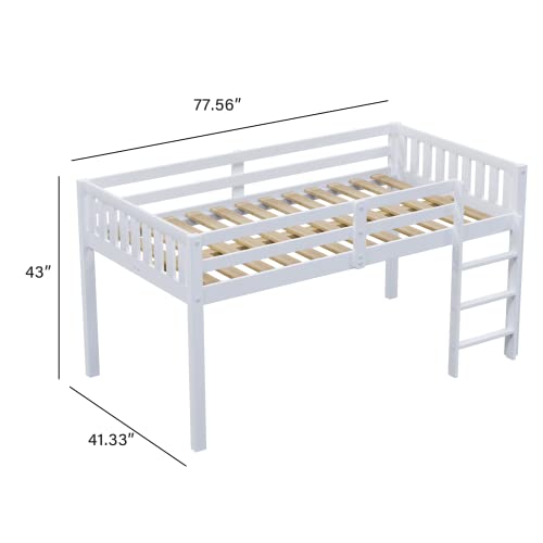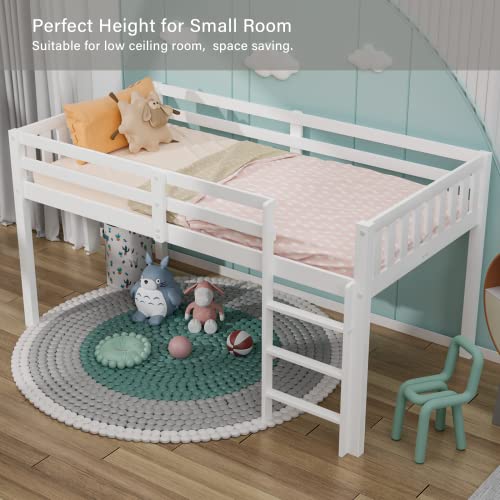 JOYMOR Twin Loft Bed Low Loft Bed Frame for Little Kids Samll Room/Low Ceiling Bedrrom with Guardrail and Ladder, White