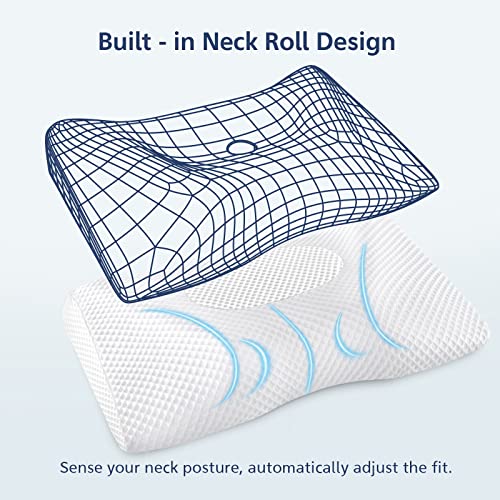 Loucima Cervical Neck Pillows for Pain Relief Sleeping, 2-Way Adjustable Orthopedic Pillow with Ergonomic Hollow Design for Spine Aligning, Memory Foam Contour Bed Pillow for Side Back Stomach Sleeper