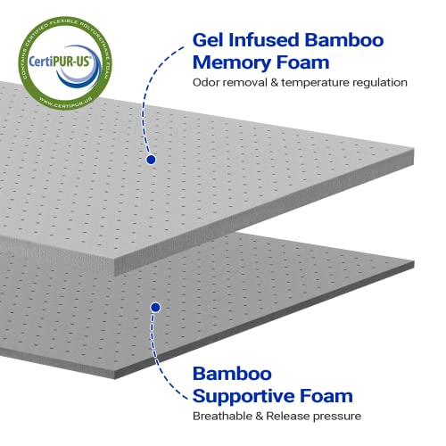 Maxzzz 2 Inch Memory Foam Mattress Topper King Size, Medium Firm Bamboo Bed Mattress Topper, Ventilated Mattress Pad CertiPUR-US Certified Plush