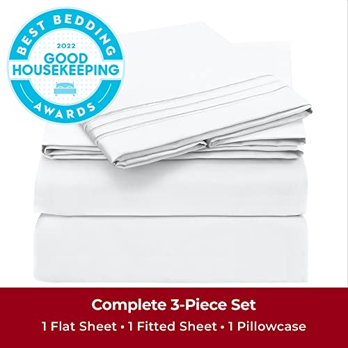 Mellanni Twin Sheets Set – 3 Piece Iconic Collection Bedding Sheets & Pillowcases – Hotel Luxury, Extra Soft, Cooling Bed Sheets – Deep Pocket up to 16″ – Wrinkle, Fade, Stain Resistant (Twin, White)