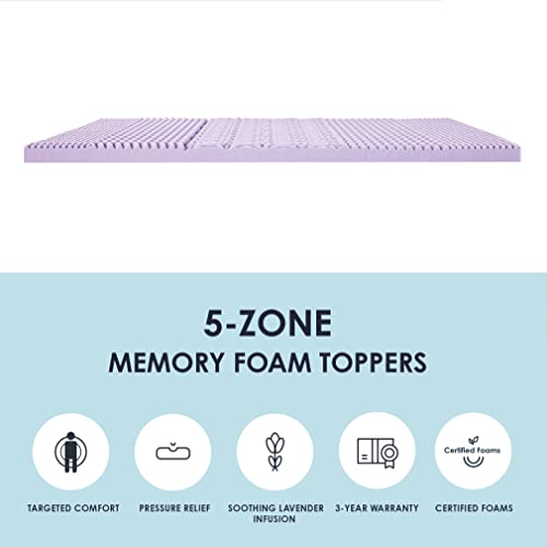 Mellow 1.5 Inch 5-Zone Memory Foam Mattress Topper, Soothing Lavender Infusion, Twin