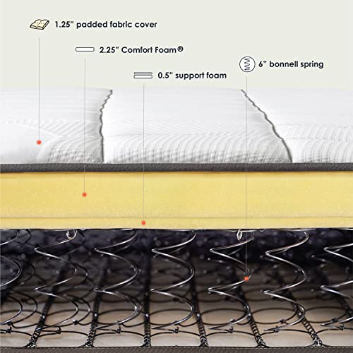 Mellow 10 Inch Classic Bonnell Spring Mattress, Comfort Foam Top with Innerspring Base, CertiPUR-US Certified Foam, Twin