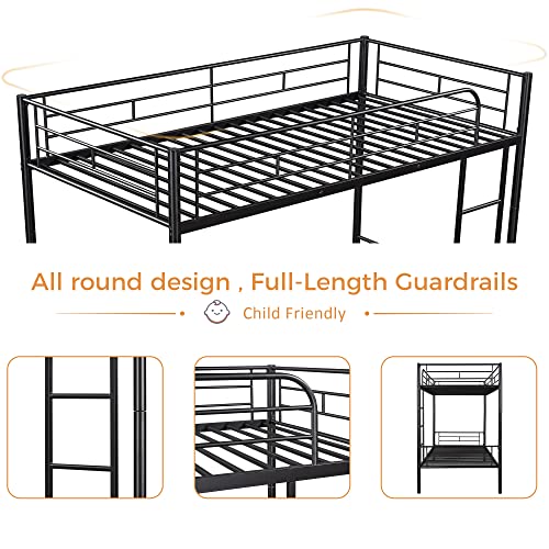 Merax Bunk Bed Twin Over Twin Size with Ladder and high Guardrail, Able to Split, Metal Bunk Bed, Storage Space, Noise Free, Black