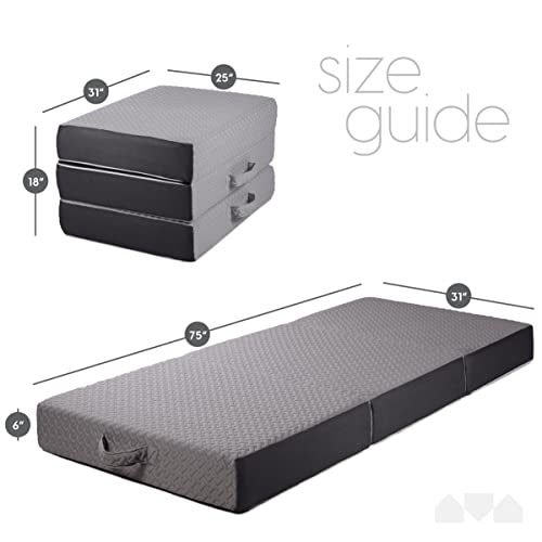 The Milliard Memory Foam Tri-fold Mattress is the ideal solution to temporary sleeping accommodations. Perfect for unexpected sleep over guests, family reunion, dorm rooms, camping and traveling. Perfectly sized fitted sheet sold separately.
