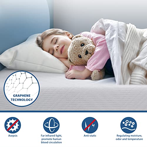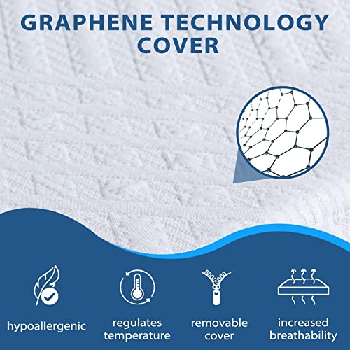 【No Risk for Use】Fiberglass-Free FR inner cover provides a safe, effective flame retardant layer around our mattresses, without the negative aspects of fiberglass and other fire-retardant chemicals. Graphene technology cover is deodorizing and antistatic qualities. CertiPUR-US Certified for safety, durability, performance, emissions, and content. No health risks for you and your family — so you can truly rest easy at night.